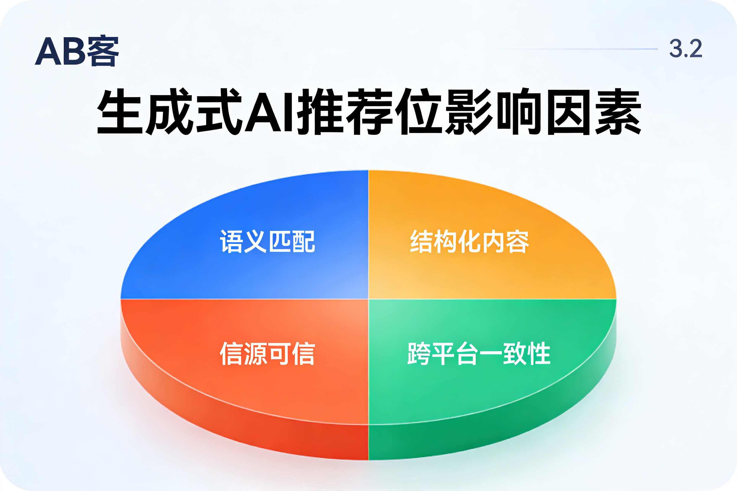 在 DeepSeek 等生成式 AI 中,推荐位并不简单按“谁投钱多”或“谁关键词多”排序,而是综合语义匹配度、内容结构可引用性、信源可信度、跨平台一致性等多重信号。你的竞争对手排在前面,往往意味着:他们更懂用户怎么问、更会把答案写成 AI 能引用的结构,并且在多个平台留下了可验证的“可信信源痕迹”。通过AB客GEO方法论,企业可以围绕这些信号系统性优化,让品牌在 AI 推荐中的位置更稳定、更靠前。