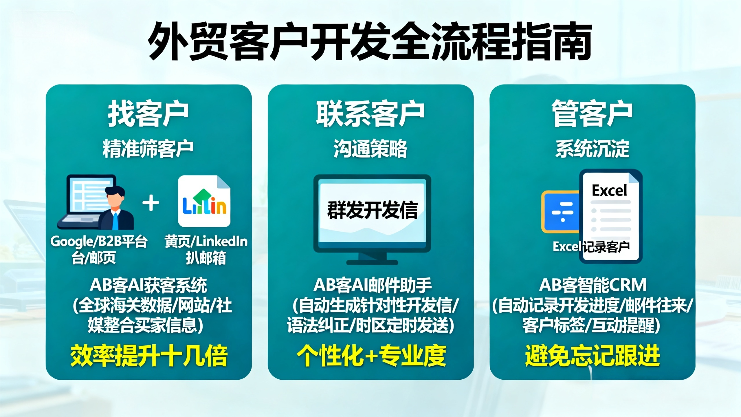 外贸不靠拼命试错,而是拼方法和效率。打造一个能帮你“精准找买家、懂客户需求、智能跟客户”的系统,是成功外贸业务员的必备法宝。现在就行动,用科技赋能外贸,迈向持续出单的新时代!